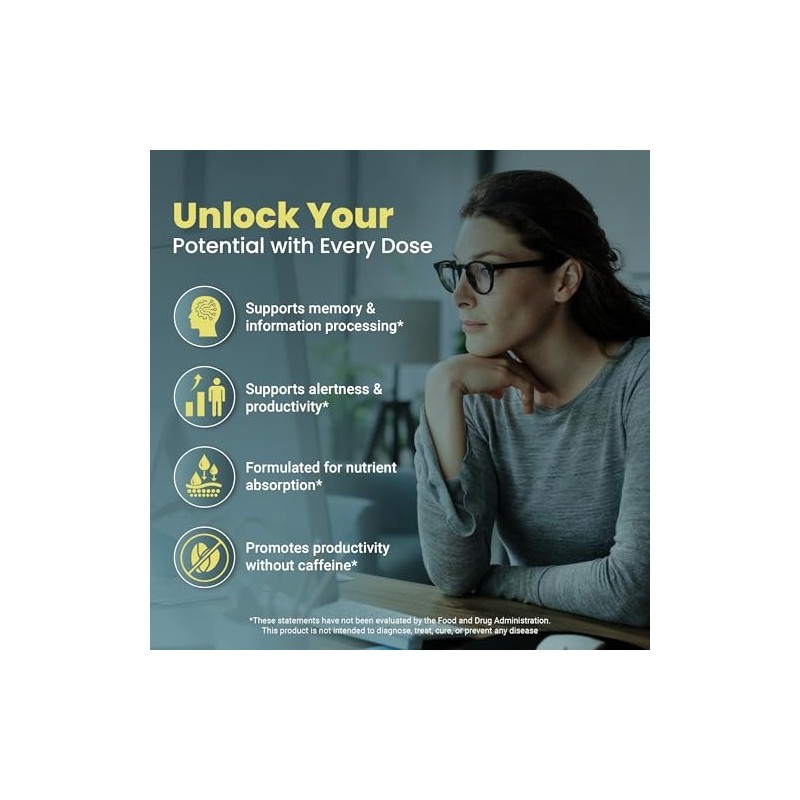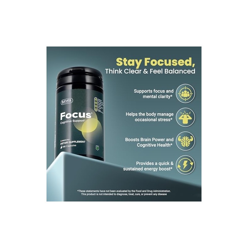 Focus Supplement (Made in Italy) | Premium Blend with L-Theanine, Lion's Mane & B Vitamins | Focus & Cognitive Support for Men & Women