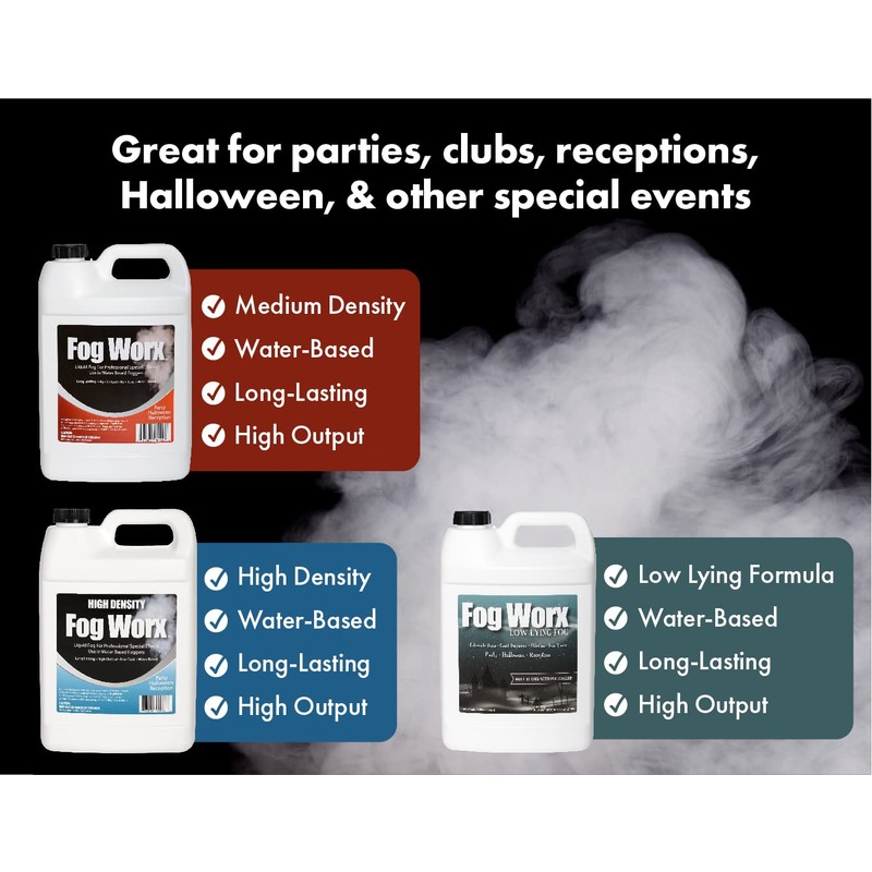 - FogWorx Fog Juice is designed for use with any water based fog machine - Optimized for machines with as little as 400 watts