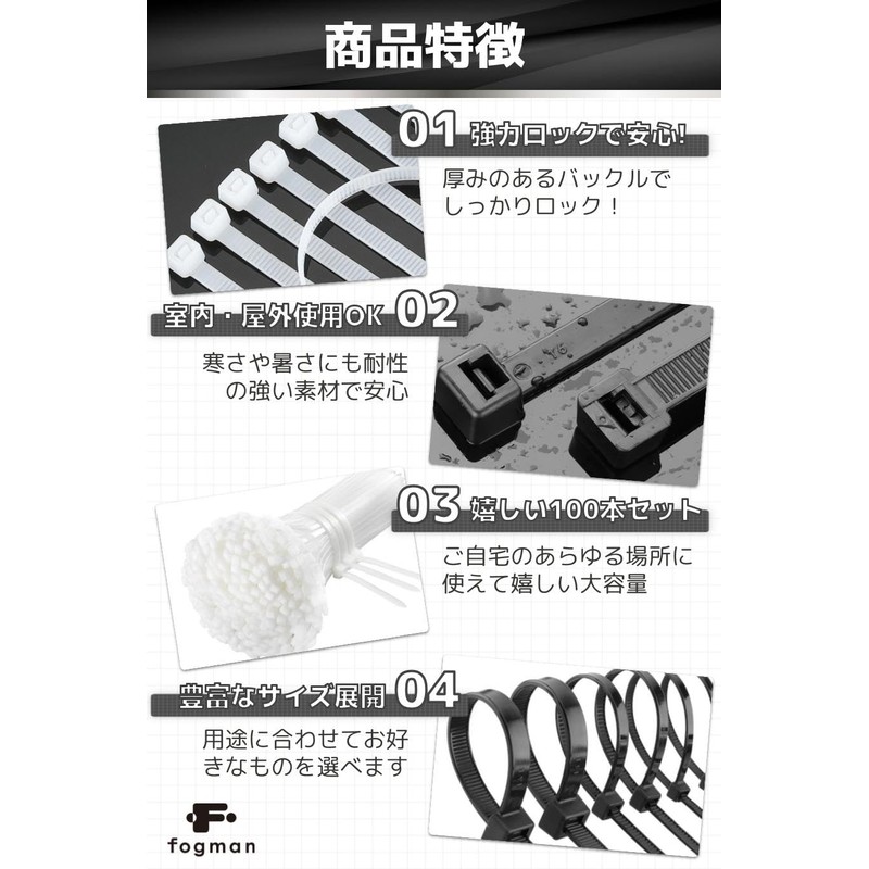 fogman Durable Outdoor Cable Ties with Choice of Thickness 3.9 - 11.8 inches (100 - 300 mm), Set of 100 (3.9 x 0.1 inches (100 x 2.5 mm), White