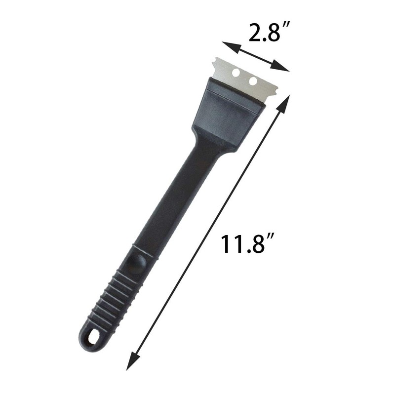1. Package includes: 1 bird cage cleaning brush.2. Material: stainless steel, plastic.3. Size:2.8" x 11.8"4. Multifunctional design, wire brush head can easily remove stains, scraper can remove the dry and caked stool of tray.