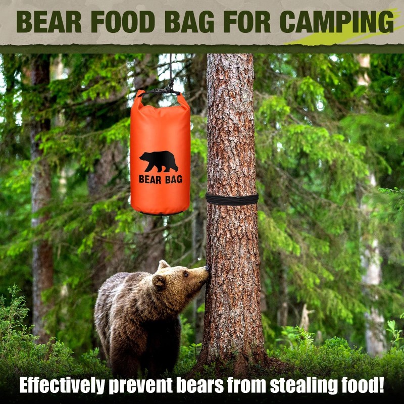 Secure and Convenient Food Hanging System: our bear proof bags for backpacking can stay out of bears' reach and reduce human bear conflicts, measuring about 10 liters in capacity, large and portable, allowing more time for you to enjoy your camping experience