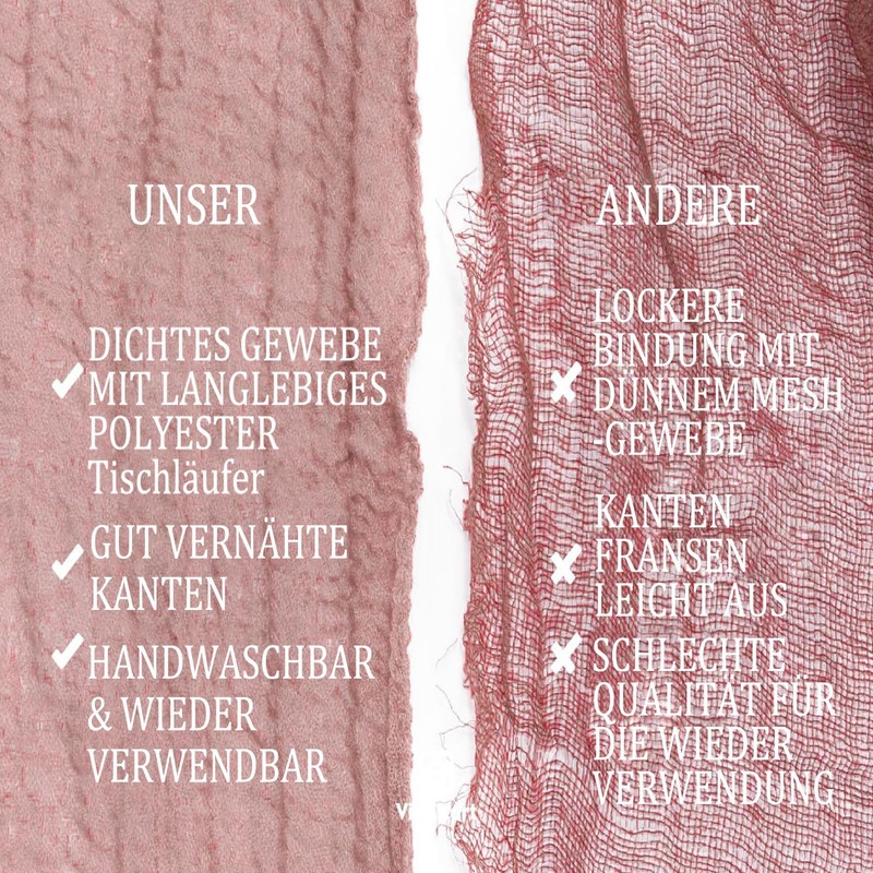 - 3. Sustainable table runner: reusable cheese cloth, robust for indoor and outdoor events.