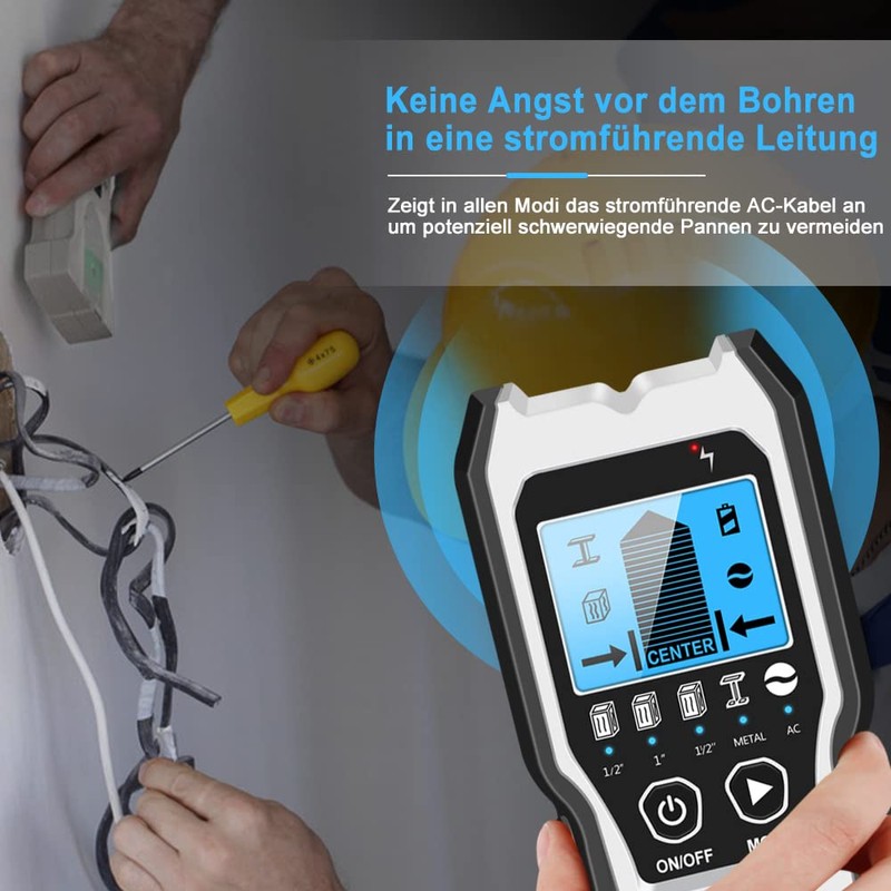 - ➤ 5-in-1 multifunctional recognition: the updated 5-in-1 mode offers the user more detection needs. The stud scan features 5 modes: 1/2 inch, 1 inch (25 mm) and 1.5 inch (38 mm), metal scan (60 mm) and AC scan (51 mm). Fast detection saves the user time and effort and makes task completion easier. Whether professionals, homeowners or DIY enthusiasts, a device for everyone.