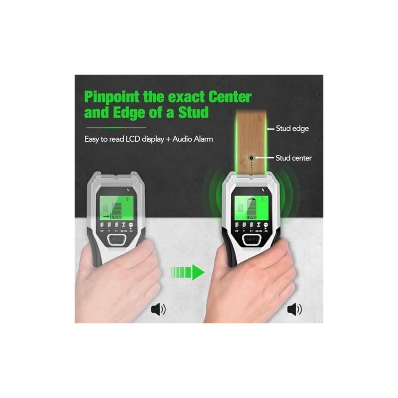 - Easy-to-read LCD display - Helps you find the exact center and edge of a stud easily and quickly - This digital stud detector features a large LCD display and clear audible warning to help you find the exact stud center and edge easily, quickly, and accurately. of stud centers and edges, saving you more time and energy