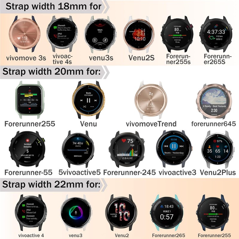 - 【22mm Quick Release Watch Band】Compatible with Garmin Venu 3/Venu 2/Vivoactive 4, Forerunner 965/955/945/265/255/255 Music, Amazfit GTR 4/GTR 3/GTR 3 Pro/GTR 2/2e/GTR 47mm, Galaxy Watch 3 45mm/Galaxy Watch 46mm, Gear S3 Frontier/Classic. Also fit for any watches with 22mm lugs. NOTE: Please check your watch model before buy it.