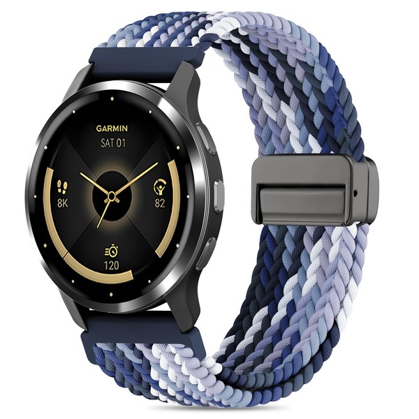 Folavii 22mm Magnetic Braided Nylon Band Compatible With Garmin Venu 3 Watch Band/Venu 2/Vivoactive 4, Quick Release Stretchy Strap Replacement for Forerunner 965/955/945/265/255/255 Music