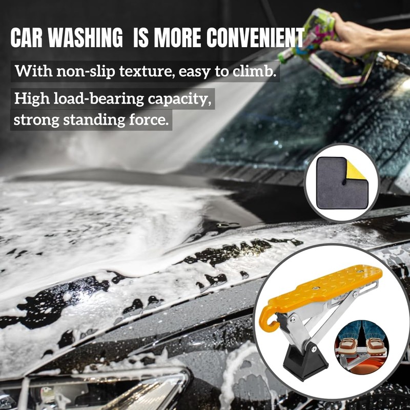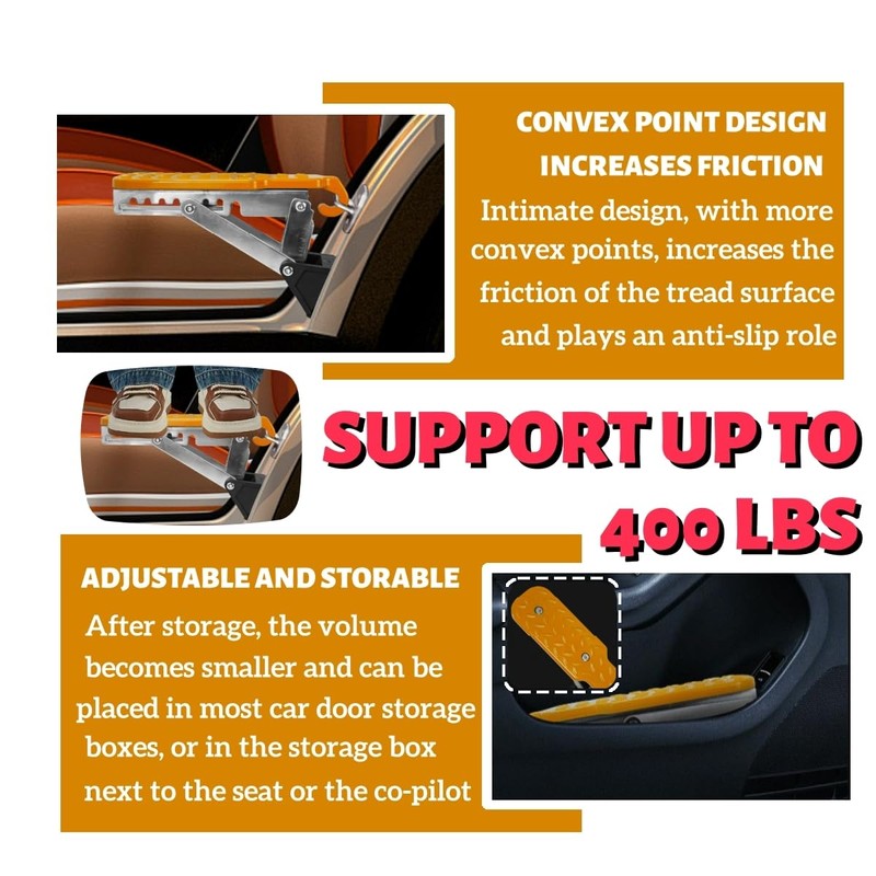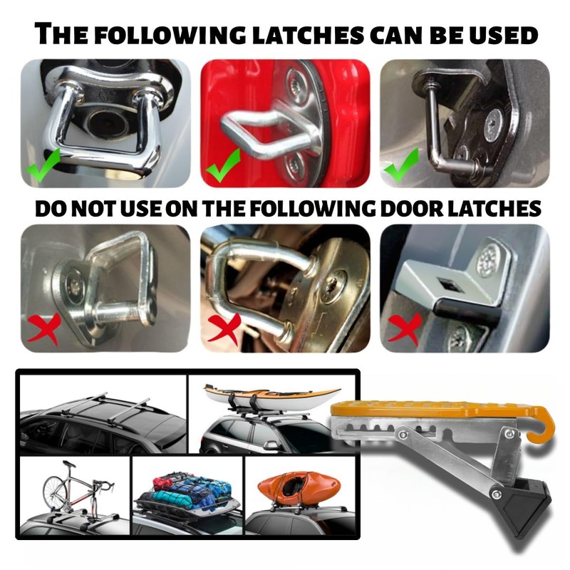 - Foldable Door Latch Step with Adjustable Angle for Car Roof Access, Orange