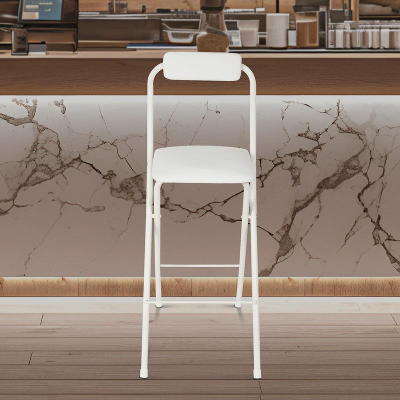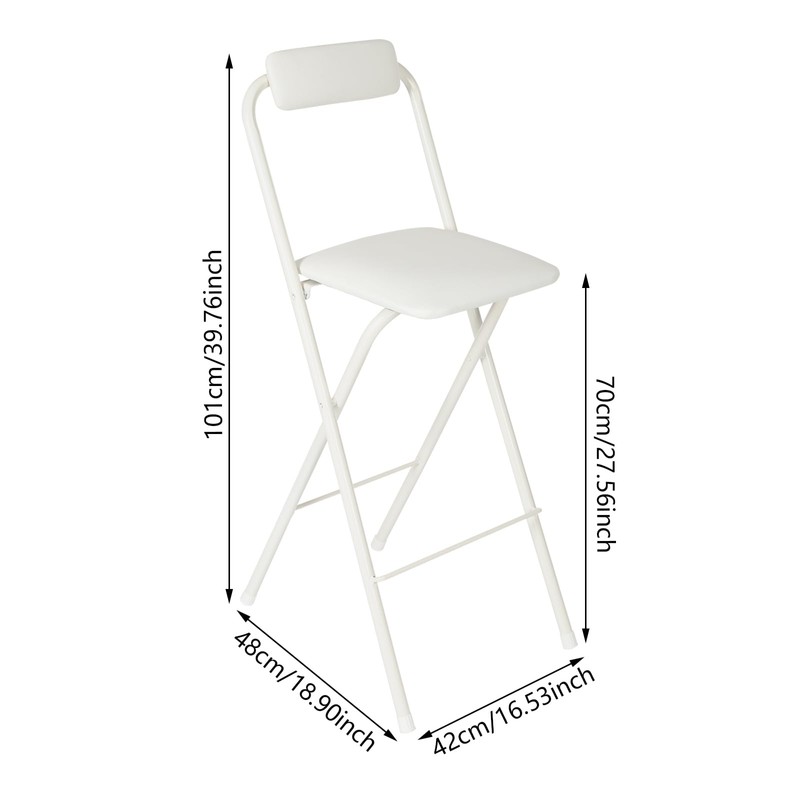 Foldable High Chair,1 PCS Tall Folding Bar Stool With Backrest,Portable Cushioned Padded Bar Stool Counter Height Seat Breakfast Chairs for Kitchen, Dining Room,Cafe,Bar (White, 1 PCS, 27.6in)