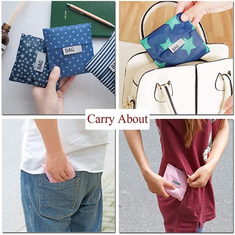 The reusable bag can be folded into a small bag, if not in use, You can put it into your purse, pocket or car, without taking up much room.Our grocery bags can be machine washed. If you want to extend the life of the shopping bag, we suggest you wash it by hand and air drying.