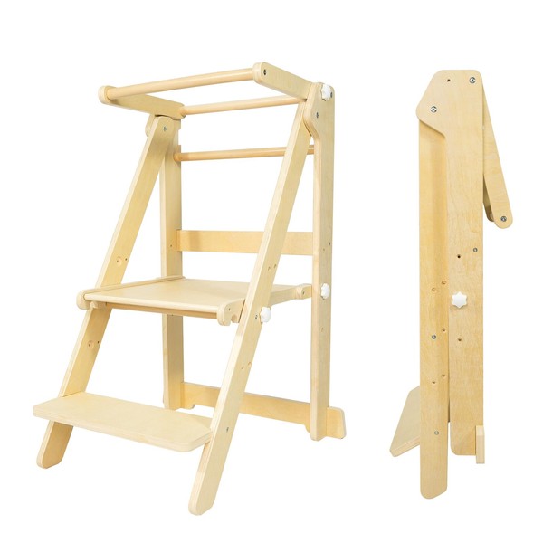 Foldable Toddler Learning Standing Tower, WOOD CITY Montessori Kitchen Step S...