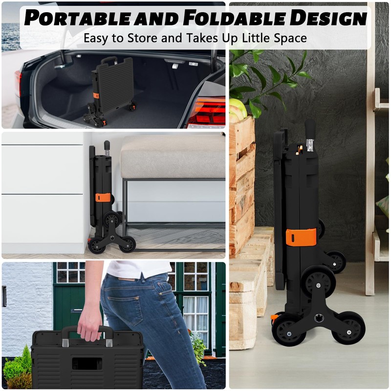 Foldable Utility Cart Collapsible Portable Crate Rolling Carts with Stair Climbing Wheels Tote Basket with Magnetic Lid Telescopic Cover Wear-Resistant 360°Rotate Wheel Noiseless for Shopping Office