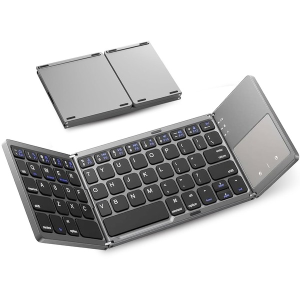 - 【Foldable Keyboard with Trackpad】: Upgrade sensitive touchpad supports multi-touch, so you can control the device without using mouse. (NOTE: iOS 13.4 and below or Android 3.0 and below are not supported!)
