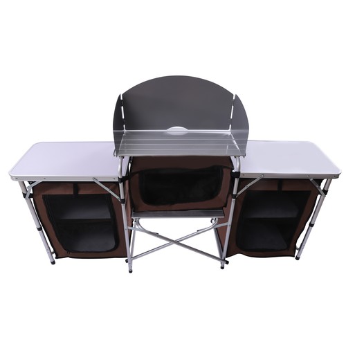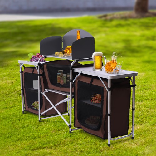 Foldable Camping Kitchen Station Kit Folding Grill Table Tabletop & 2 Side Table