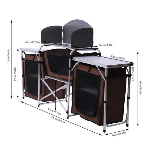 Folding Camping Kitchen Table Picnic Cabinet Table Portable Cooking Storage Rack