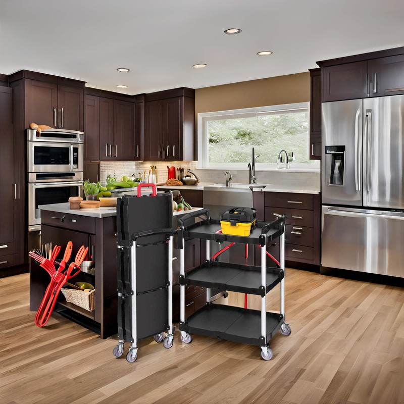 - Portable Cart: The 3 Tier utility cart is Collapsible, which can be put in car trunk or at the back of the bike and take it to anywhere you want without taking up the space.