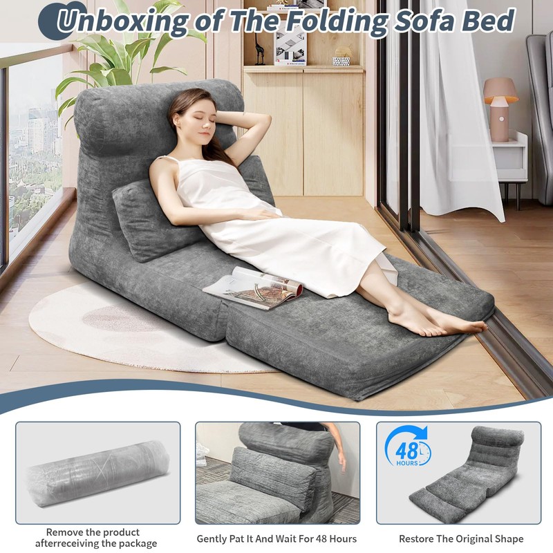 - 【No Assembly & Space Saver】This multifunctional fold out chair requires no assembly. You just need to open the box and pull it out to start using it. Please note that this lazy sofa bed is compressed and vacuum-packed. After unpacking, allow the sofa bed to expand for 48 to 72 hours, and it will regain its full shape and size, providing comfort and functionality at any time.