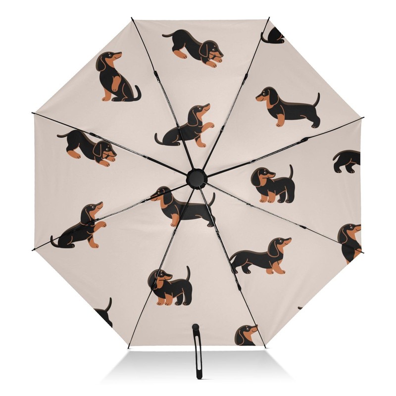 Folding Umbrella Compact Happy Dachshund Travel Umbrella Automatic Open Close Cartoon Inverted Umbrella for Rain Windproof Sun Umbrella UV Protection Large Portable Reverse Umbrella for Women Men Out