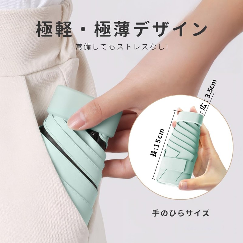 Folding Umbrella, UV Protection, 100% Light Blocking, Rain Umbrella, UV Protection, Ultra Lightweight, 8.2 oz (235 g), Folding Parasol, Women's, Men's, Compact, 99.9% UV Protection, Super Mini,
