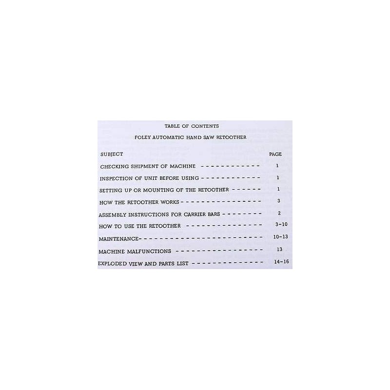 Foley Belsaw Automatic Hand Saw Retoother 385000 Operating Instructions Manual