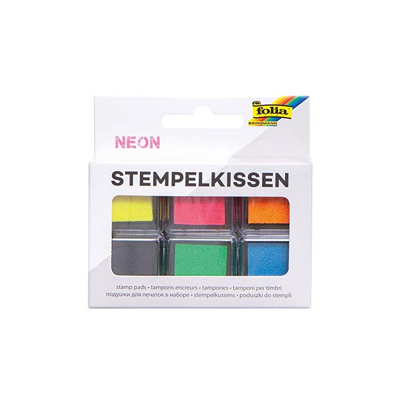 folia 30182 – Neon Ink Pad Set, 6 Ink Pads, in Various Colours, Ideal for Decorating Cards and Other Crafts