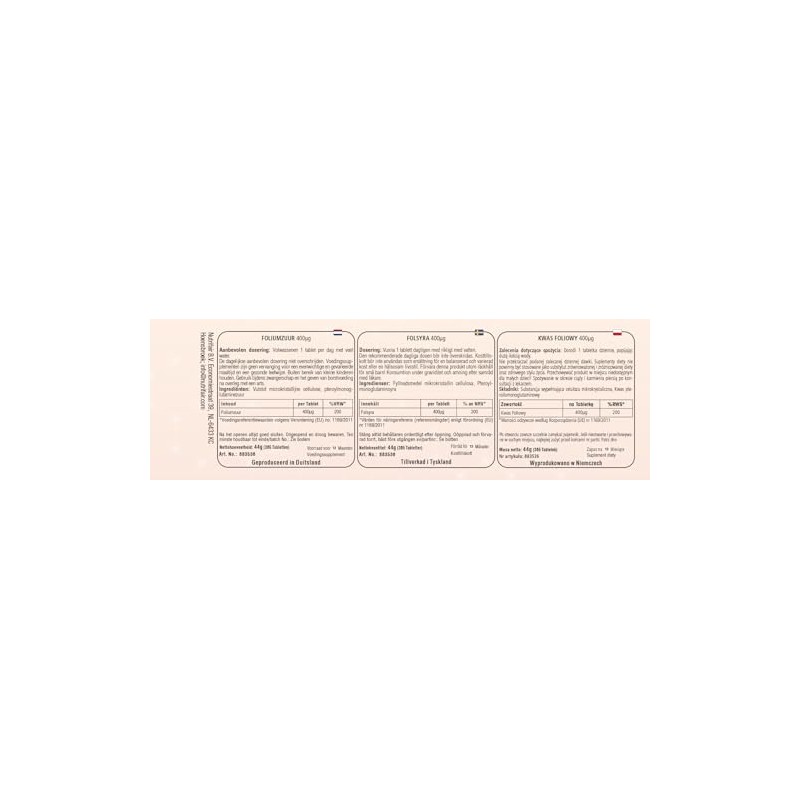 - Full daily supply: each tablet contains 400 μg of folic acid - which corresponds to more than the recommended daily requirement (NRV). 365 tablets of high-dose savings supply