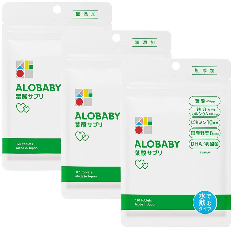 Folic Acid Supplement, Tasteless, Odorless, Alobaby, Folic Acid, 120 Capsules, Set of 3, Additive-Free, Pregnancy, Ferrous, Vitamin, DHA, Hot Activity, Couple, Men