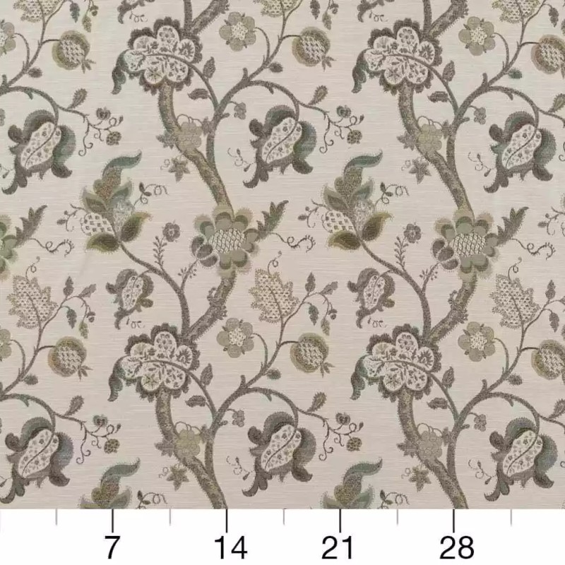 Meet Captiva Celadon a 100 % polyester tapestry fabric featuring a woven floral design. It's fade-resistant.