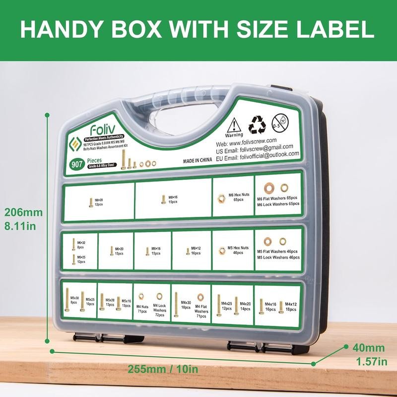 PROFESSIONAL LABELED PACKAGE: All the nuts and bolts are organized in a sturdy transparent box and all the sizes will not mix up. Clear labels on cover is convenient for users to get the sizes they need. If unfortunately box damaged on shipping way, please contact us we will send you a new box.