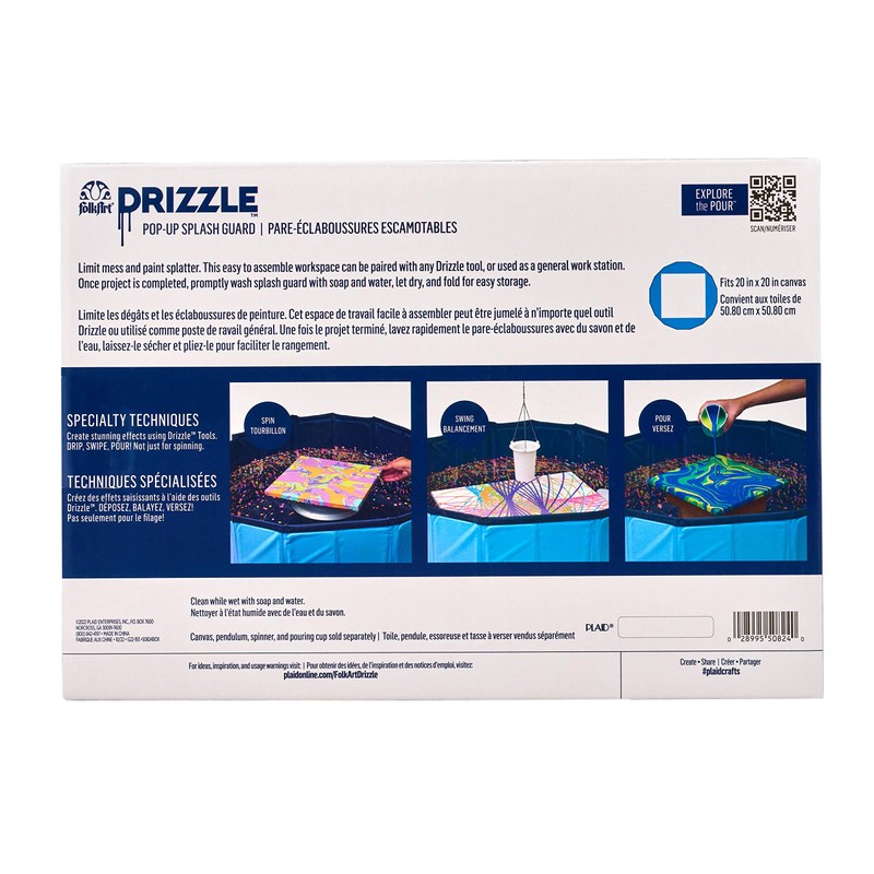 - EXPLORE OUR DRIZZLE TOOLS – The FolkArt Drizzle Pop-Up Splash Guard can become a reusable workstation that is easy to clean and folds for storage.