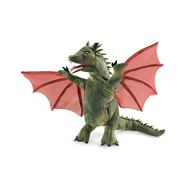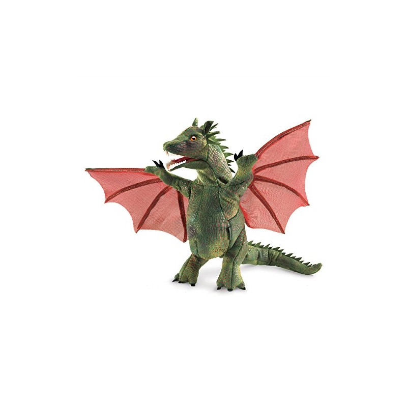 Folkmanis Winged Dragon Hand Puppet, Green, red, 1 ea