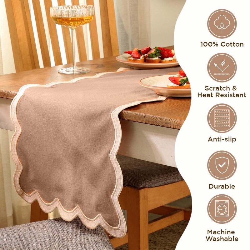 • EASY TO WASH: This scallop linens is machine washable in cold water with like colors. The colours of this linen table runner do not fade and last for years to come.