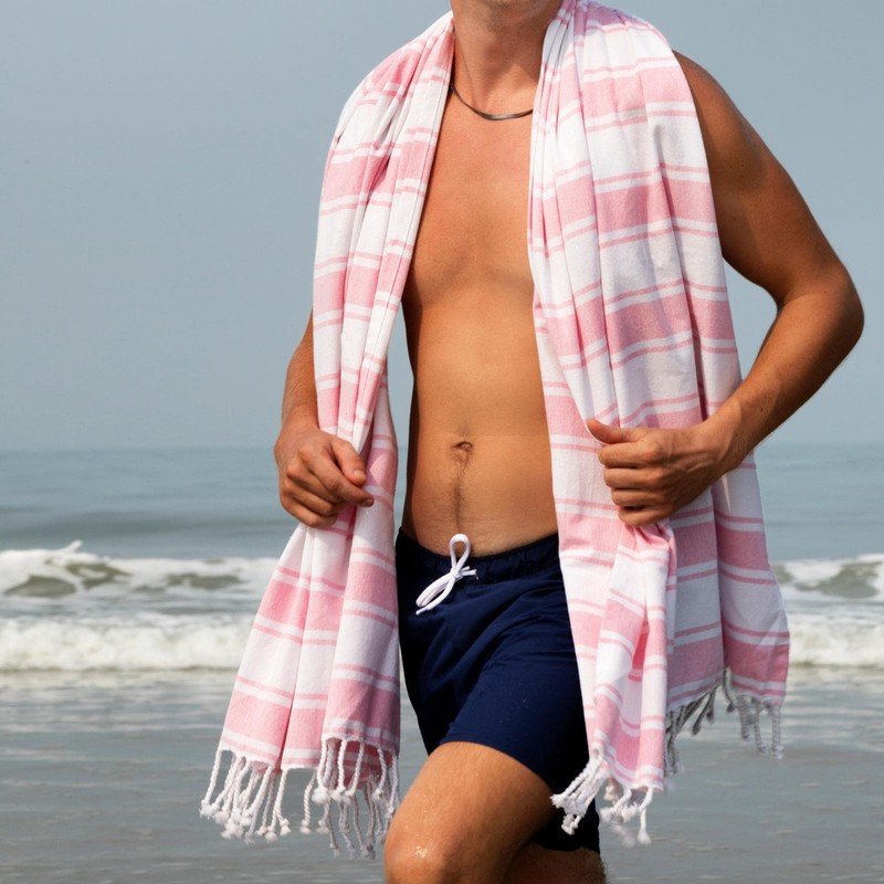 Folkulture - Toalla de playa turca o manta de playa a prueba de arena, 40 x 72 pulgadas con bolsa de playa para día festivo, toallas de baño de secado rápido 100% algodón de secado rápido para adultos, ligeras y grandes, color rosa