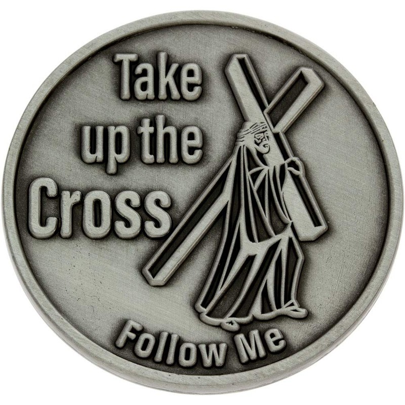 • 1 1/4 Inch Antique Silver Take Up the Cross Pocket Token