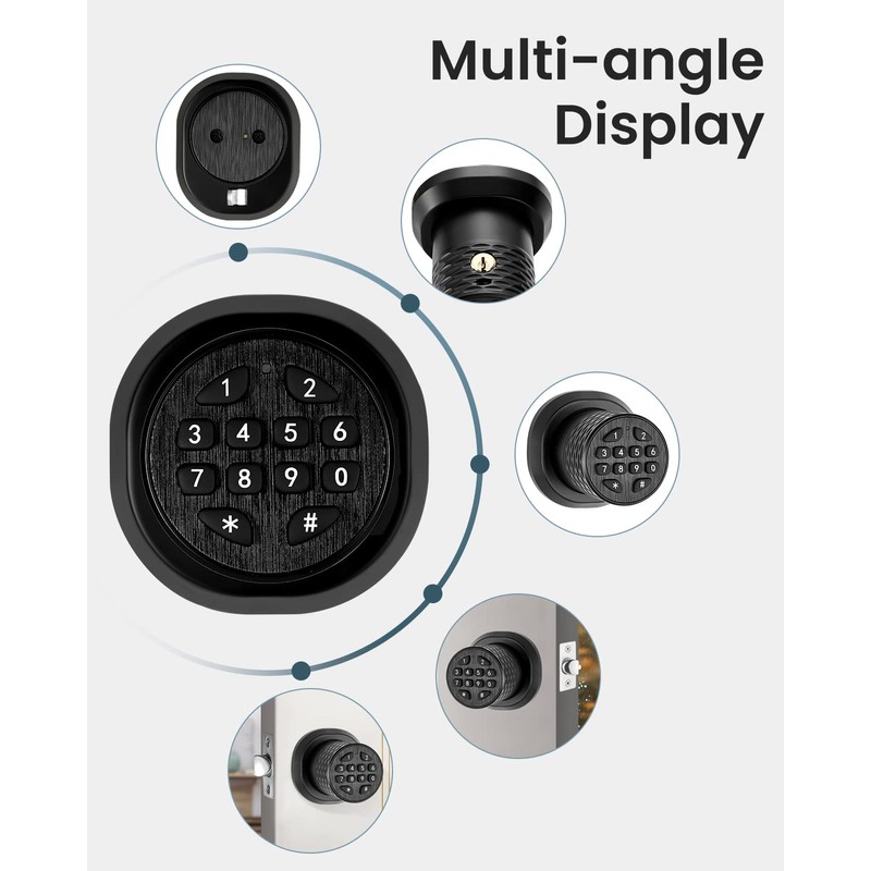 Smart Door Knob with Keypad, Electronic Keyless Entry Door Lock, 3s Auto Lock, Anti-Slip Handle, Anti-Peeping Password, Matte Black Door Knob