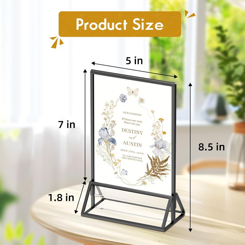 • Crystal Clear Frame and Double Sided Display - information shown in the table sign holders could be seen on both sides, making it visually appealing from any angle. it is a good way to treasure your special memory front and back with the 5x7 frame