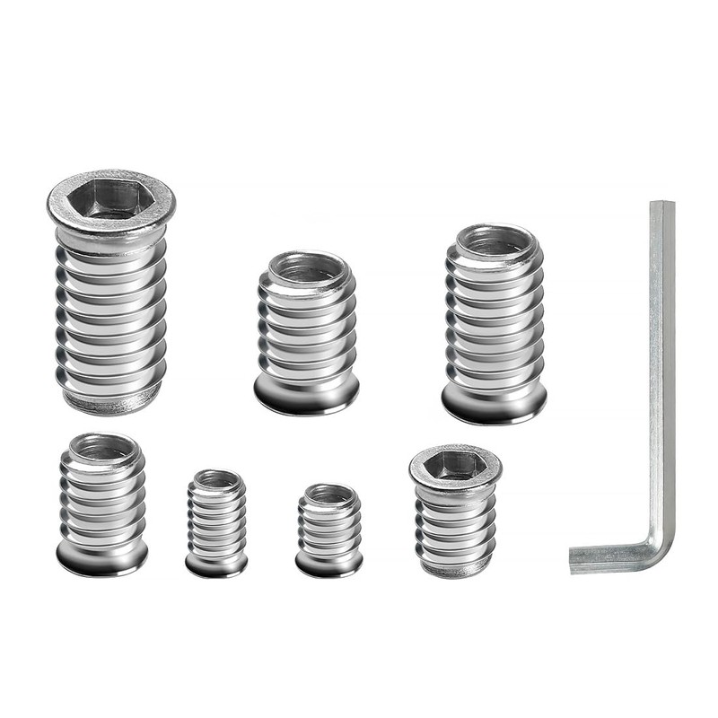 - Easy installation: we offer threaded insert nuts and corresponding hex keys. These threaded sleeves are easy to screw in, simply drill a hole of the appropriate size, install and tighten it with a hex key, threaded inserts. Thanks to its unique external thread design, insert nut is not easy to pull out, twist or vibrate, play a pre-embedded role.
