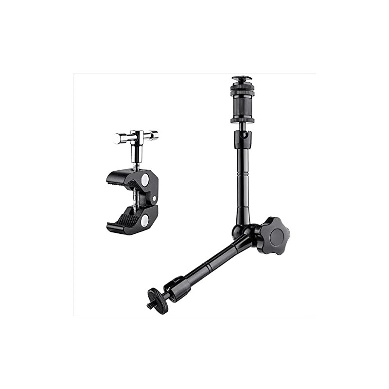 - Articulating magic arm simplifies the mounting, placement and adjusting any on-camera lightings and other accessories