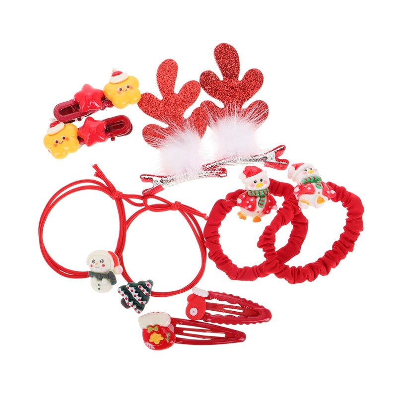 FOMIYES 10pcs Christmas Hair Ties Set Cute Reindeer Antler and Santa Claus Barrettes Elastic Ponytail Holders for Holiday Parties Non- Snowman and Tree Hair Accessories