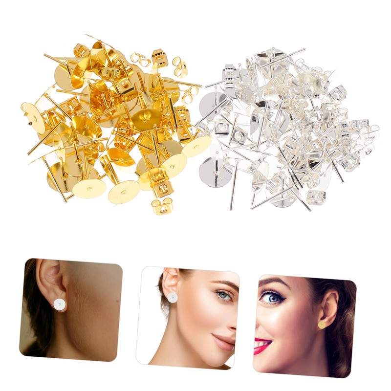 FOMIYES 200 Sets Fashion Ear Studs DIY Earrings Accessories Hypoallergenic Ear Jewelry Kit Lightweight Comfortable Silver Gold for Creative Projects