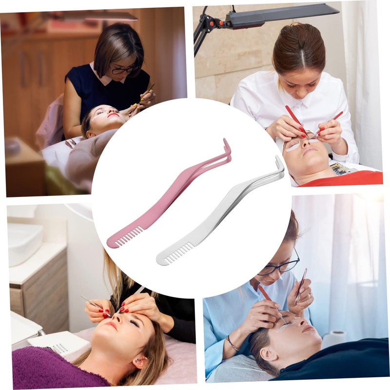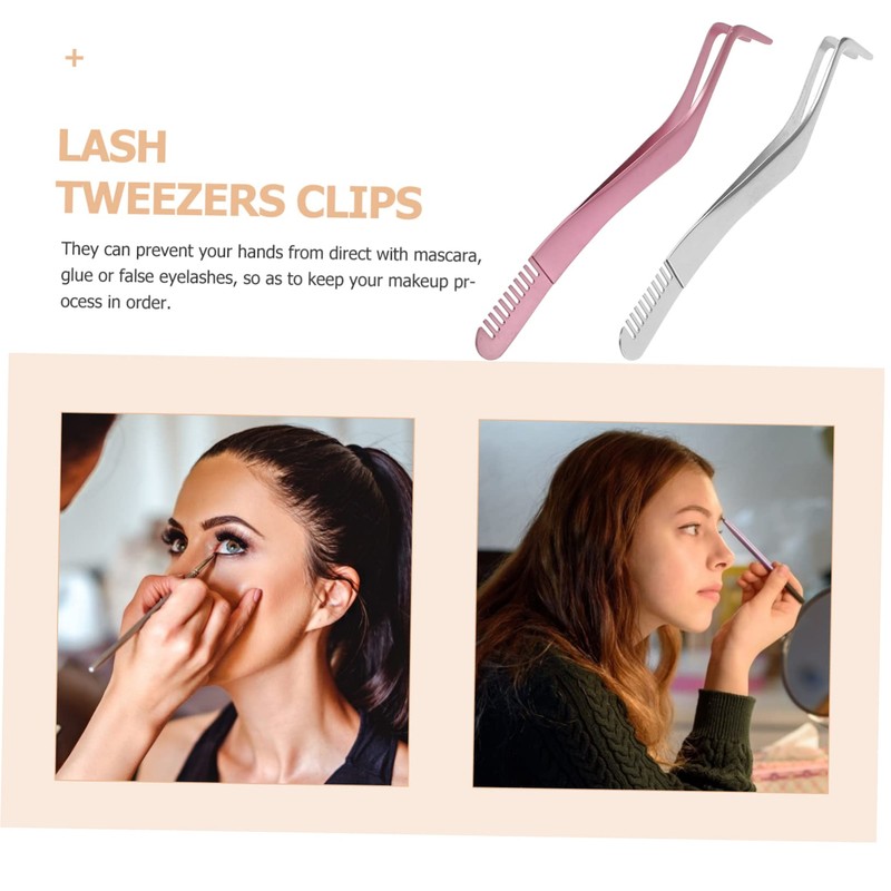 FOMIYES 2Pcs Stainless Steel Eyelash Applicator Tool Durable Lash Tweezers for Easy Makeup Application Convenient Small Eyelash Tools for Women for False Eyelash Extensions