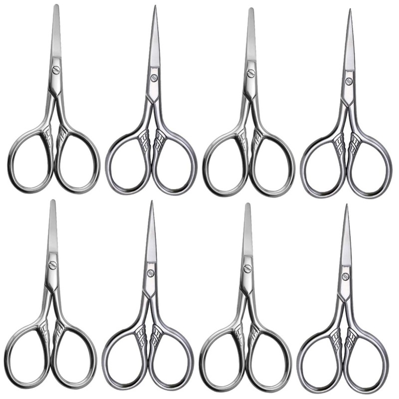 FOMIYES 8pcs Stainless Steel Eyebrow Scissors Precision Trimming Tool for Men Includes and Rounded Tip Brow Scissors for Facial Hair Grooming Nose Hair Removal and Beard Shaping