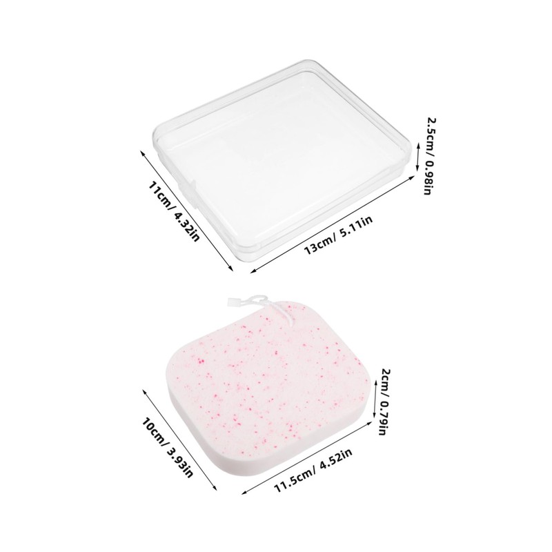 -Size(box):13.00X11.00X2.50cm/5.11X4.32X0 compact exfoliating sponge.