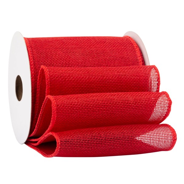 Fondersy 9-Meter Red Burlap Ribbon Wired Burlap Ribbon - 100mm Width for Gift Wrapping, Floral Arrangements, Wreath Making, and Christmas Decor