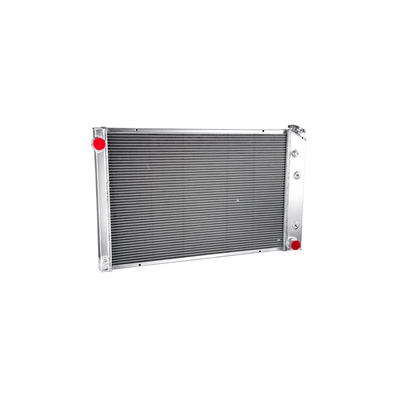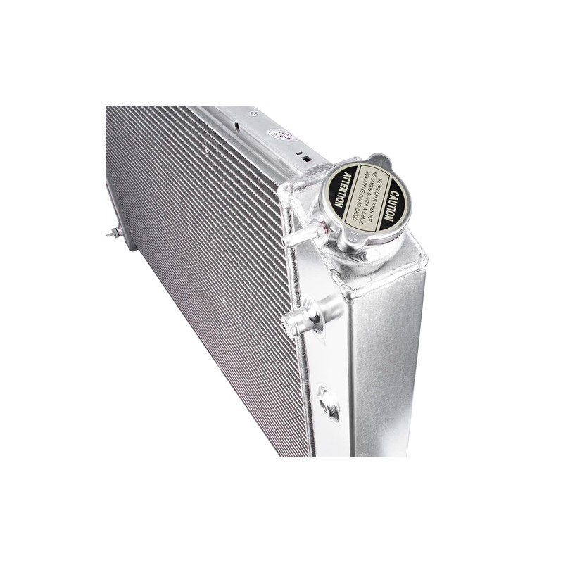 This aluminum radiator is designed to provide maximum cooling efficiency to prevent premature engine failure. Its light-weight, and high-heat transferring aluminum features a tube and fin design that, dramatically increases surface area that enables the heat to dissipate more efficiently. This Aluminum Radiator is at least 40% more efficient than stock ones. Most importantly, it has a much higher capacity for coolant than stock ones, which means that your cooling system will be more efficient and will be more resistant to temperature surges in racing applications.