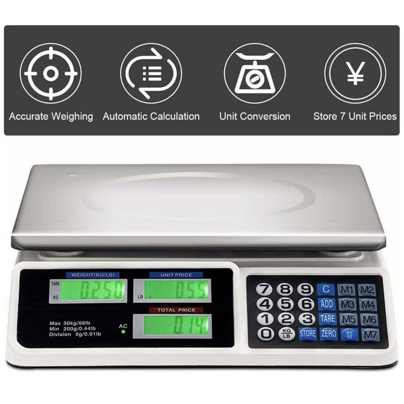 Food Scale 40KG/88LB Commercial Computing Weight Scale Food Pricing Scale Digital Price Computing Scale High Precision with LCD Display for Vegetable Fruits Stores Supermarkets