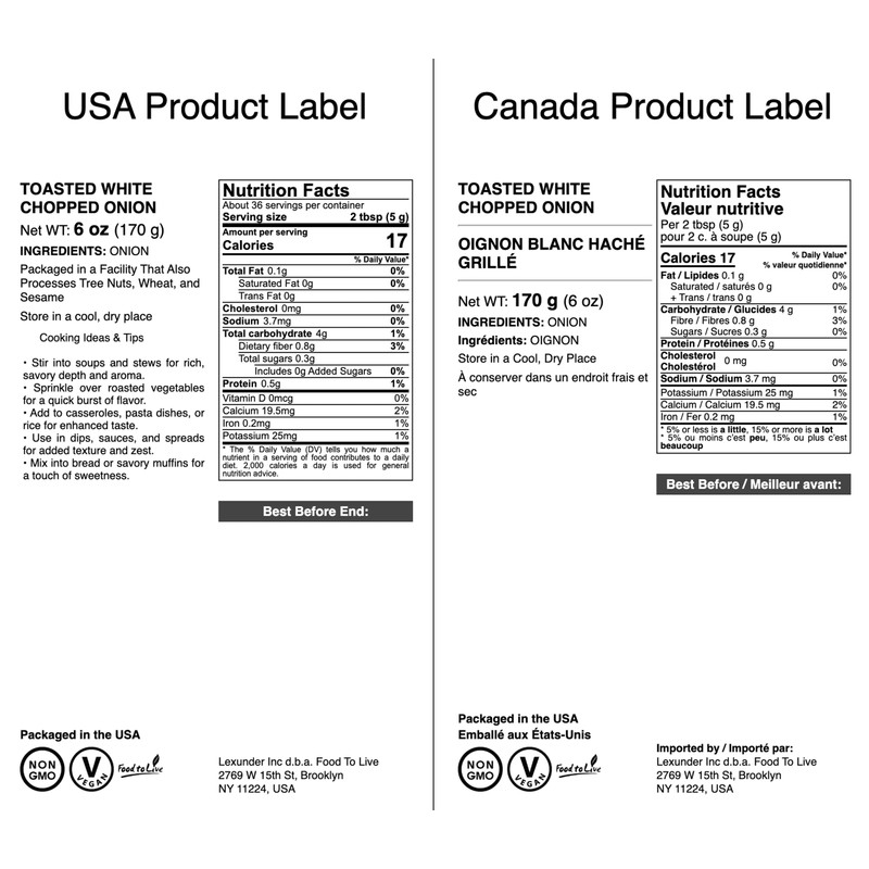 Food to Live Toasted White Chopped Onion, 6 Ounces – Roasted, Ready to Use. Ideal for Cooking, Soups, Salads. Non-GMO, Vegan, Bulk
