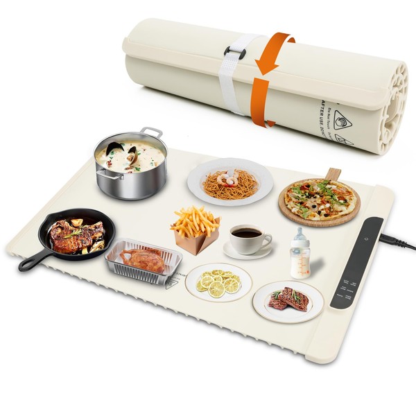 Food Warming Mat - Electric Warming Tray with 10 Temps & 0.5-10 Hours Timer,Child Safe Lock,5 S Fast Heating Full Surface Silicone Food Warmer,Roll Up Heat Pad for Parties,Buffets,Gatherings,Travel