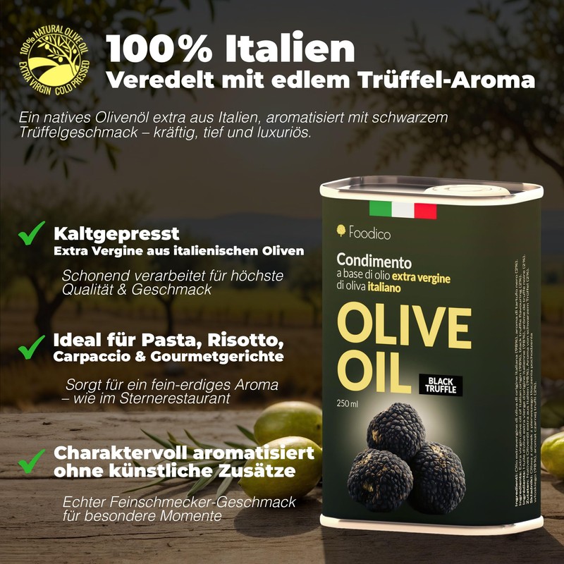 - ✅ Intensives Trüffelaroma auf Basis extra nativen Olivenöls – für anspruchsvolle Genießer