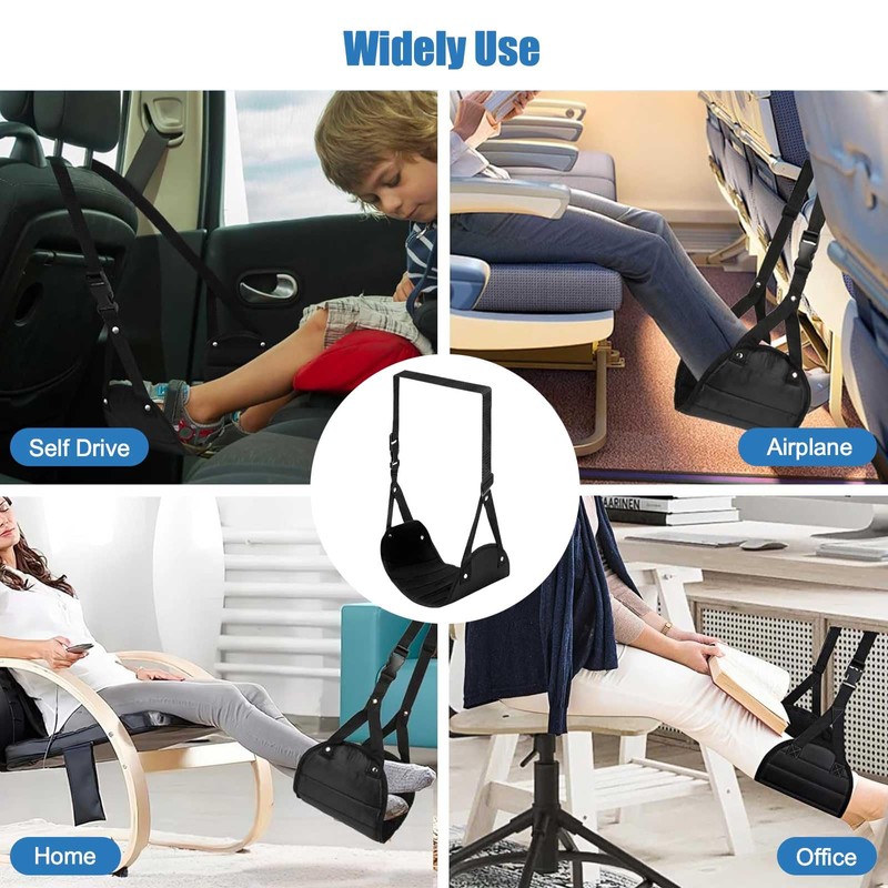 - 【Versatile Use】Easy to install with adjustable straps that can be attached to any seat tray, this foot rest for air travel is not only perfect for airplanes, trains, and cars but also ideal for use in the office, at home, under desk, or in hotels. This foot hammock for plane travel allows you to elevate your feet and provide support, relieving pressure on your lower back, knees, and hips, helping to alleviate leg stiffness and swelling from prolonged sitting and flying.