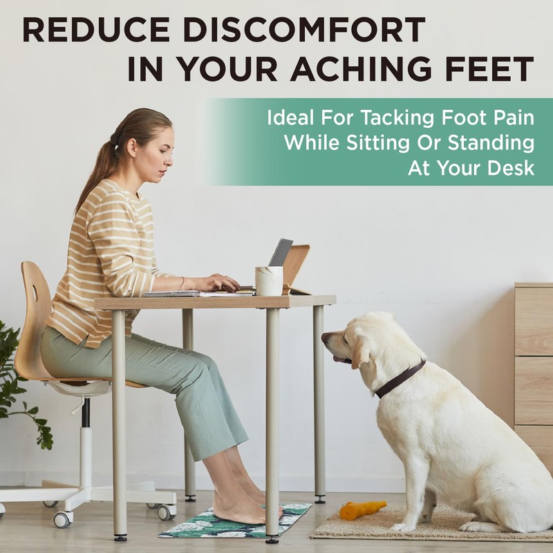 - Soothe Tired Feet & Boost Work Comfort - Experience relief from achy feet with our invigorating Foot Massage Pad. Designed for use while sitting or standing at a desk, the textured surface stimulates pressure points, easing discomfort and promoting blood circulation. This improved circulation helps to reduce fatigue and muscle tension, allowing you to work more comfortably for extended periods.